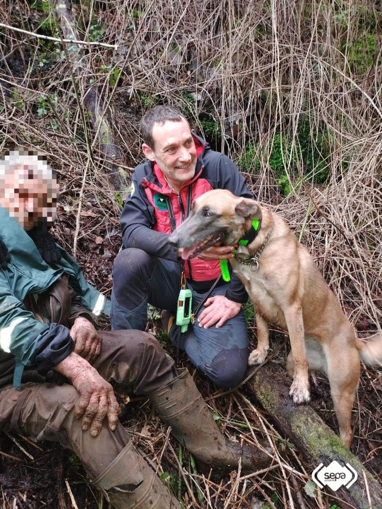Con esta pista, los guías de la unidad canina retomaron la búsqueda a primera hora de este miércoles. A las 08:39 horas, los perros marcaron un punto en una zona boscosa y escarpada. Allí abajo se encontraba Ernesto, que había caído por una ladera de unos 40 metros de profundidad, quedando atrapado en un área de difícil acceso cerca de la carretera CU-7.