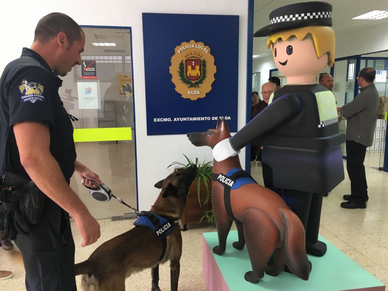 En las pasadas Fallas se indultó uno de los ninots que recreaba al agente canino Lobo con su guía. Ahora se encuentra en las dependencias de la Policía Local de Elda